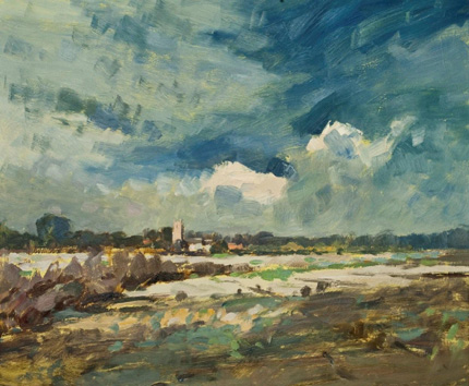 TIM BENSON Tim Benson was born in London in 1978. After attending school in Highgate and Hendon where he showed considerable promise as a draughtsman he undertook an art foundation course at Middlesex University in 1996. In 1998 he earned a place on the fine art degree course at the prestigious Glasgow School of Art. In 1999 he decided to transfer his degree to London and embarked on his second year at The Byam Shaw School of Art in North London. After gaining his fine art honours in June 2001 Tim's potential was immediately spotted by a leading London gallery and his work was included in an exhibition of landscape paintings in September of that year. From there he did not look back and has subsequently shown with some of London's finest galleries. During the 8 years since he left art school Tim has evolved as a painter, refining both his technique and the interpretation of his subject. In recent years his attention has fallen on the flatlands of East Anglia, in particular Norfolk and Suffolk. It is no coincidence that this is where both Constable and Seago made some of their most powerful works, as the combination of impossibly vast skies and abrupt verticals in a sometimes overwhelmingly horizontal landscape creates views that have a stark beauty found nowhere else. Tim, like those great artists before him, is not interested in the minutiae of a landscape, preferring instead to render the subject with loose, expressive brush strokes and a muted palette that reflects the earthy hues of the scenes he paints. Tim is interested in all forms of painting and he treats his portraits and life studies with the same freedom as he does his landscapes. He comments "whether I am painting a landscape, portrait or still life the fundamentals are the same. I try to break the subject down into form, colour, light and dark. It is tempting and natural to make assumptions about a subject, for example we are all hard wired to recognise human faces so it is very tempting to paint what we think we know rather than what is in front of us. So an eye is not an eye, it is a series of shapes and colours just as a tree on the horizon is only a fleck of paint with no leaves or trunk to speak of." |