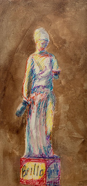 MEL SMOTHERS Artist Statement for the Exhibition 'Big Oil, Lost And Found', 2023 I'm placing objects from climate change, and humanitarian events on top of a mass consumerism box. I have been bringing wood and other found objects, charred from recent fires on the west coast, or salvaged from a Florida Keys refugee boat, into a conversation with art history, climate change denial, corporate environmental greed. These subjects are inherited with the times and drawn from personal narratives and sources that span art history. They reflect my interest in philosophy and contemporary thought. Statement for the Exhibition 'The Climes Are A Changin', 2022 Thanks for taking a closer look at my new project. It is Art about Art. It is also the next chapter in I Painted Over Andy Warhol began in 2006. Over those years I have considered the sculptural possibilities of the IPOAW project. I have now found an entry point using Brillo boxes as pedestals for classical figures created from found objects, at this moment I'm thinking beach wood. The originals can be cast or 3D printed as a series. I do not believe I have ever seen anything like it. The title has evolved from "Standing on Andy Warhol" to "The Climes Are A Changin" Mel Smothers