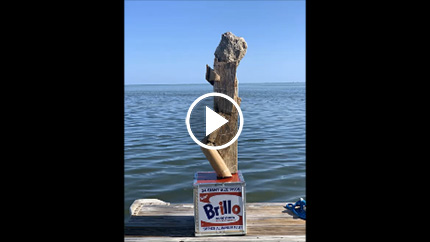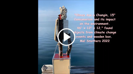 "I'm thinking mass consumerism with the Brillo Box and its effect on global climate change with the found objects," Ariel Zaccheo, Curator, March 2022.