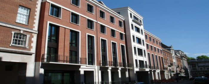 http://www.albionstone.com/portland-stone-projects/9-15-sackville-street The new £14 million building comprises approximately 40,000 sq ft of office, two - 2 bedroom flats and one-3 bedroom flat. Sackville Street contains many well preserved, Listed Georgian buildings and the design of the new building uses the same traditional materials of brick, Portland Stone and lead, to reflect their proportions and rhythm in a contemporary manner. The wide frontage has been subdivided into five bays to reinforce the vertical rhythm of the streetscape and a prominent cornice line introduced below the mansard roof storeys to reduce the perceived mass of the additional height. Albion Stone supplied 60m ³ of Portland Jordans Basebed for this development.