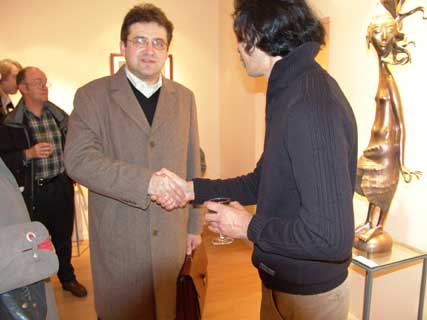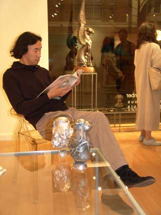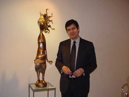 Dashi's pieces of art have already become a synonym for contemporary ethnic ritual sculpture. Fulfilled mostly in realistic manner, they are at the same time significantly hyperbolic. Perfect plasticity and exalted emotionality of his 'warriors' and 'guardians' have made their creator a classic of modern sculpture.The variety of materials Dashi works with is impressive: bronze, silver, gold, mammoth tusk, horsehair. The works 'Full Moon' and 'Raven' are a genre mixture of sculpture and tapestry and have no precedent in recent art history. In Dashi's sculpture one can find traditional images of Central Asia steppe civilization - warriors and beauties, lamas and shamans, totemic animals and mythological creatures. In 2003 Dashi was awarded the Silver Medal of the Russian Academy of Arts. The exhibition held at Tibet House in New York earlier this year gained the artist a worldwide fame. The Hay Hill Gallery is located at 11B Hay Hill, Mayfair, W1. The exhibition is open Monday to Friday 11.00 to 18.00, and Saturday from 11.00 to 17.00. Photo Report from the Reception of 16 November 2004 |