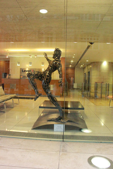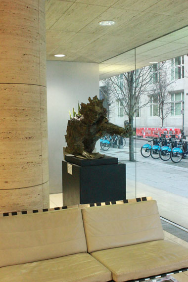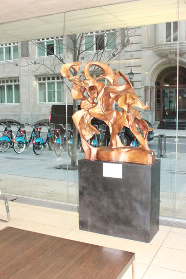 Meets New at 100 Leman Street Hay Hill Gallery is proud to present in co-operation with ARTful Ltd the sculptures of Andrew Cheese at 100 Leman Street. This beautiful glass fronted building is an ideal home for these striking works, a perfect combination of clean lines against rustic patinations. Despite its reputation as a modern business location, Leman Street is shrouded in mystery, hiding an underground ‘ghost’ station which was bricked up in 1941, never to reopen. Just a short walk from the DLR at Tower Hamlets tube station, Leman Street is now easily accessible to visitors to the exhibition. Unafraid to experiment with his work, Andy Cheese often uses a broad range of materials, including stone, resin, wood, steel and plaster. Taking the human figure as a starting point, he plays with the idea of revealing undercurrents of energy inherent within the static. His detailed studies into the movement of everything from dancers to kinetic machines, have led him to produce iconic sculptures such as the works on display at Leman Street: ‘Breaking Through The Wall Of Words’ is a dynamic bronze portrait cast from old printing press letters; ‘Energy’ is a man wound tightly out of copper ribbons springing forward, or falling back; the abstract ‘Movement’ is a sprinter in a race or dancers balancing.In association with Hay Hill Gallery, the sculptures will be on show at 100 Leman Street until the beginning of July 2014.Featured Artist: Andy Cheese |