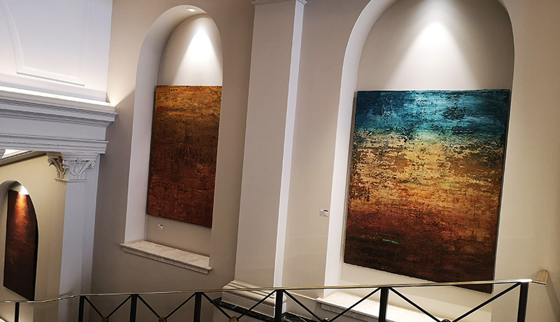 Here the pattern on the marble floor, inspired by St Peter’s, is complete. The overall effect is airy and elegant, conferring a strong sense of identity and classic harmony. The marble has been carefully selected for its veining, shade and pattern. The whole floor is laid out to a grid pattern with 3-metres squares with 60-70 cm borders enclosing the various shadings and circular designs.