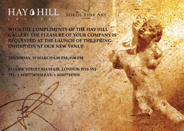 senses. These paintings are the result." Hay Hill Gallery Hay Hill Gallery founded in 1995, has recently relocated to 23 Cork Street. The Gallery has a full collection of over 50 limited edition posthumous casts of works by Auguste Rodin, including such works as The Kiss, The Thinker and the Hand of God. The Hay Hill Gallery continues to introduce modern artists whose work pays homage to academic traditions; and mount exhibitions focusing on sculpture and international art. The Hay Hill Gallery was founded as a joint venture between the Russian company Art Service Centre Ltd with over nine years experience of the international art scene, and the British company Sirin Ltd. Photo Report from the Private View of 19 March 2009 |