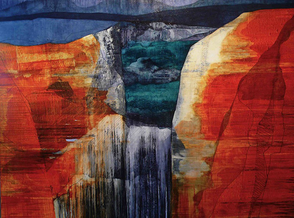 Zoe Benbow’s paintings aim to communicate a sense of awe and enjoyment in landscape, as a means of questioning our cultural construct of wilderness and our relationship to the natural world. The images are developed from drawings made ‘in the field’, yet by an intense engagement with the processes of painting and studio practice, the resulting canvases become as much a meditation on geology of association and memory as of an actual place. Benbow’s experience of walking and drawing in landscape is that everything – light, wind, vegetation and stones – are shifting, sliding, moving with every moment. Contrary to the quest for achieving long distance or summit she enjoys meandering, searching, looking and often bizarrely napping and dreaming in protected hollows. Exploring a micro–macro dynamic, she is interested in the experience of landscape as intimate and surrounding as opposed to distancing and remote.