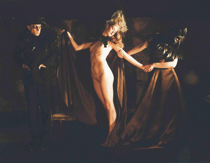 Marco Sanges is the fantastic storyteller who creates his photographic narratives in cinematic sequences. The distortion of Sanges’ silvered lens suggests that all is meaningless, nothing has purpose. Within such surreal walls, logical arguments fall into nonsense; eloquent speech collapses into gobbledegook and the inevitable outcome is silence. As a result, the subjects are trapped in cruelly endless mimes, menaced relentlessly by incomprehensible outside forces. Borrowing stylistically from the silent movies of the 1920s and 30s, the players gesture helplessly from the other side of their screens. Aghast, afraid, astonished, their expressions are enormously exaggerated. Darkly enchanting, these photographs are touching in their depiction of human frailty and strength. Once the metaphysical rug is whipped out from under your feet, you are forced to come to a conclusion, make your own mistakes and see the funny side. Suddenly, you too are part of the picture, rooted to the spot, wildly gesturing and making peculiar faces. Afterwards you might scratch your head and wonder what just happened, but Sanges is a magician, an unhinged puppet master with a camera. As you step back out into the June afternoon, come rain or shine, you may feel you’ve a touch of sunstroke- but it’s only your mind playing tricks on you again.