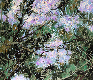 with oil paint, he also fuses his work with