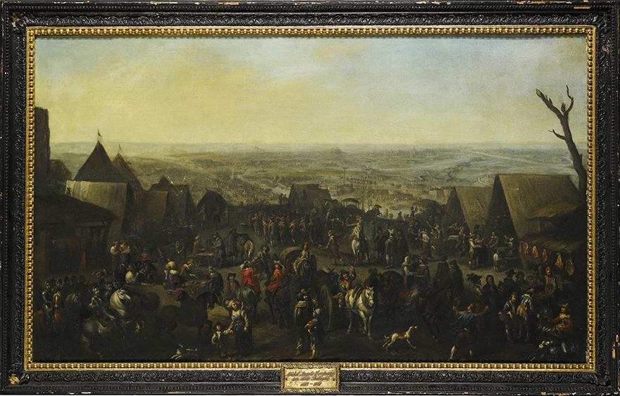 'Camp Scene', oil on canvas, 73.2 x 123 cm Michelangelo Cerquozzi ( b Rome , 12 Feb. 1602 ; d Rome , 6 Apr. 1660 ) was an Italian Baroque painter , known as ‘Michelangelo of the Battles’ because of his predilection for scenes of combat. He spent all his career in Rome, where he had considerable contact with northern painters; his friendship with the Dutchman Pieter van Laer led to his becoming the leading Italian exponent of bambocciate (small pictures of low-life and peasant scenes). Giovan Battista Passeri and Filippo Baldinucci, Cerquozzi’s first biographers, described him as a painter of still lifes, battle scenes, and Bambocciades. He received his first training as a still life painter in the circle of Agostino Verrocchi (to whom the present painting used to attributed). Among the artist’s Roman friends were such artists as Pietro da Cortona, Domenico Viola, and Giacinto Brandi, but also foreigners like Paulus Bor and Cornelis Bloemaert. Cerquozzi felt particularly drawn to the Spaniards living in Rome, which might have something to do with the fact that in his youth his talent had been fostered by the majordomo of the Spanish embassy. He frequently received commissions from personalities associated with the pro-Spanish party in Rome. Cerquozzi was one of the most important painters active in Rome at the time. |