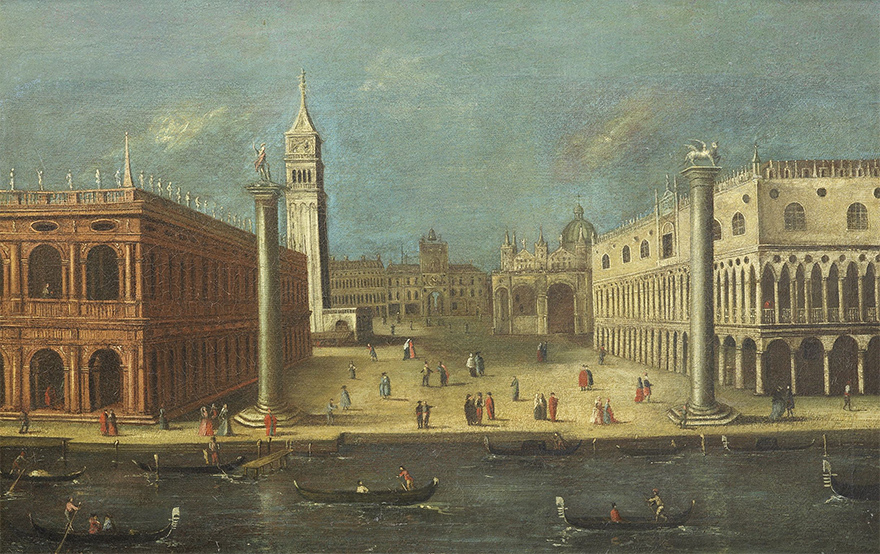 'The View Of Venice', oil on canvas, 62 x 97 cm Joseph Heintz the Younger (Augsburg 1600-1678 Venice) Joseph Heintz the younger was the son of the painter and etcher Joseph Heintz (Basle 1564-1609 Prague) and served his apprenticeship as a painter under his stepfather Matthäus Gundelach in Augsburg between 1617-21. In the later 1620s or early 1630s he painted the famous Christ in Limbo (sold Sotheby's, London, 6 July 1994. lot 4391) which can be related to the artist's own conversion to the Roman Catholic faith, without which he could not have established himself later in Venice. It is thought that Heintz spent time in Rome during the 1630s and early 1640s, finally settling in Venice where in circa 1644 Pope Urban VIII made him a Knight of the Golden Spur. He painted numerous religious works for Venetian churches, but his importance lies in the depiction of Venice's state ceremonies and festivities featuring large numbers of figures, and as such he was the precursor of Luca Carlevaris and Giovanni Antonio Canal, called Canaletto. |