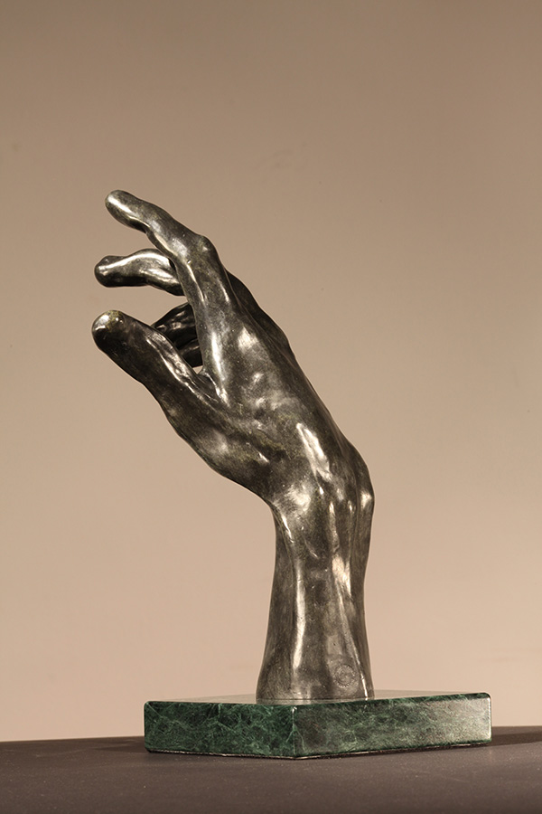 The hand is oversized for the proportions of the figure, a distortion in keeping with Rodin's accentuation of the most important features of his burghers, their hands and heads.