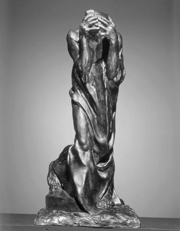 This small version "Andreus de Andre", one of the six "Burghers of Calais", dates to 1900, five years after Rodin delivered his monument to Calais, the city which had ordered it in 1885. This small figure is not merely a copy: Rodin used the reduction to refine the gestures of pathos and torment embodied by "Andreus de Andre".