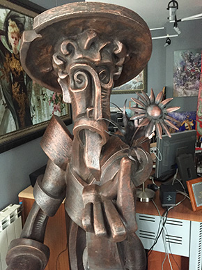 Critical outline on “Don Quixote” sculpture by Nikolai Silis: In the late 60s, Nikolai Silis began working on a new series of graphics. As a result, we got 14 pages of brilliant works dedicated to the famous hero of the Spanish writer Miguel de Cervantes, Don Quixote. The main creative goals for Silis were always works on the form, and Don Quixote felt just right for the plastic experiments. "I immediately imagined him all formed and twisted, made from thick sheets of metal" recalled the sculptor in his memoirs. (N. Silis, "Memoirs", Academic Publishing Centre "Nauka", Moscow, 2016, p.39.) Gradually, the hero of the graphic series began to acquire real outlines, first in clay, then in gypsum and finally, in his already familiar copper form. Although later, on the creative path of the sculptor, this image received many incarnations. In particular, Silis has a smaller bronze version of Don Quixote. This version was created specifically for the Moscow International Film Festival, which was later awarded to director Yuri Norshtein when he received the Tarkovsky Award for the cartoon "The Hedgehog in the Fog" in 1989. Don Quixote became the most distinguished character of the master. The image of Don Quixote, embodied by Nikolai Silis, combines monumentality with intimacy. He is largely out of the total number of his works, that usually gravitating toward generalization of forms, and yet, it is a veiled self-portrait of a master. Particular attention of Silis to the plastic interpretations in sculpture made significant changes in the world of art and included him in the lines of greatest artists of the twentieth century: Auguste Roden, Antonio Giacometti, Henry Moore, Vadim Sidur, Tony Cregg. Don Quixote became the main work of the sculptor, in which he was able to express his moral and ethical ideals, as well as the genius of the artist-creatorBiograpy: Since 1956 Nikolai Silis became a member of the Moscow Union of Artists. Since 1956 he had been taking an active part in all-Union, regional and international exhibitions, as well as in private Russian and foreign galleries. Many works of the sculptor were acquired and donated to state museums and private collections. Exhibitions: The first personal exhibition of Nikolai Silis took place at the Russian Academy of Arts in Moscow, near the metro station "Kropotkinskaya". The second - after 30 years, during «Perestroika», in 1987, in the gallery MOSKh on Vavilov Street, Moscow. The third solo exhibition was organized in 1992 in the Moscow Central House of Artists. 1994 - The Valentine Ryabov Gallery